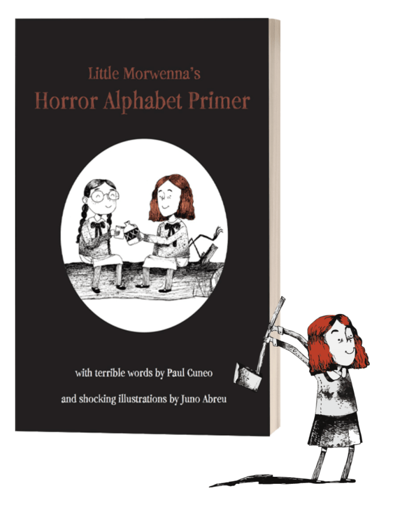 Our first book is Little Morwenna’s Horror Alphabet Primer. You can learn more about it here. Or contact us here.